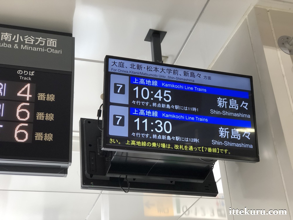 One other important piece of information: the timetable. Schedules for the Matsumoto-Kamikōchi route are available on the Alpico website. Note how Kamikōchi Line trains are synchronised with bus arrivals and departures to offer smooth connections at Shin-Shimashima Station.