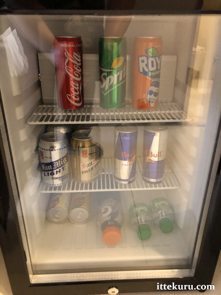 The in-room amenities and mini-bar. We left the chiller’s contents untouched, given the (expected) extortionate prices. Walk to the nearest convenience store if your thirst needs slaking.