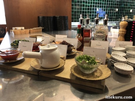 If you’d like to give the meal a personal touch, you’ll find a selection of condiments spread out at the corner of the bar.