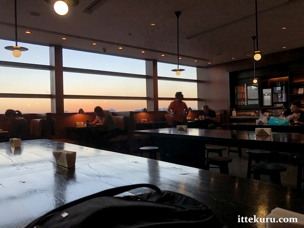 There are views to the outside, though they’re nothing to write home about. The windows are large but set back some distance from the edge of the building. Not the fault of the lounge, mind you: it’s a limitation imposed by T3’s architecture and affects windows on this level that overlook the tarmac (including those in the nearby Skyview Lounge, for example).