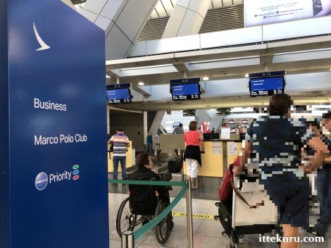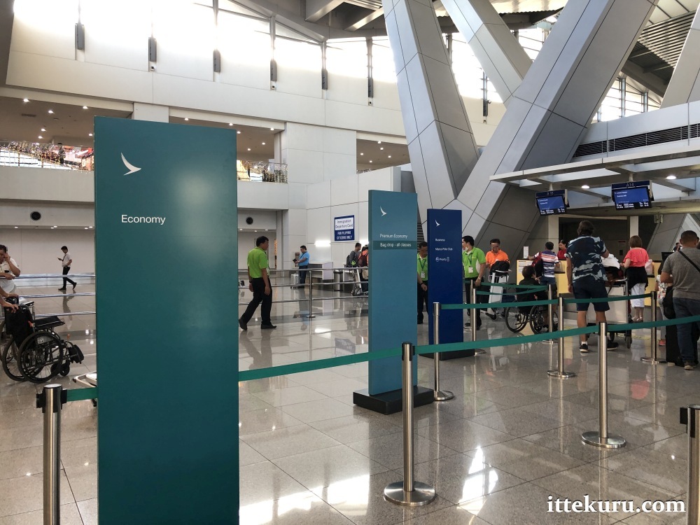 At the time of my flight, CX’s counters were located near the southern end of the check-in hall. (Note that counter assignments may change without prior notice.) A staff member checked my flight ticket before letting me enter the enclosure.