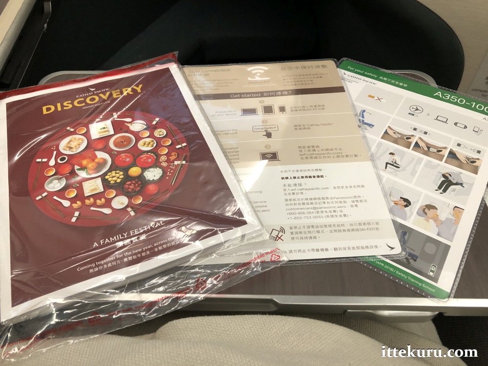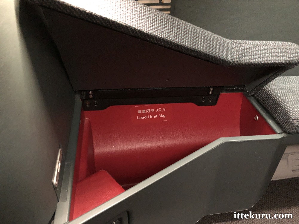 Mine was a short flight so that’s all I found in there, but I believe CX would also stash an amenity kit and bottled mineral water in the compartment ahead of a long-haul service.