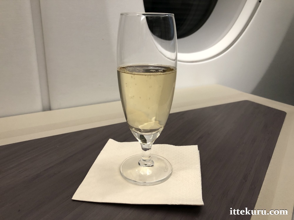 Choice of welcome drink, presented on a tray. Juice and water were available, but I wanted that extra hint of luxury and picked up a glass of champagne.