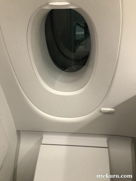 With time to kill between boarding and take-off, I wandered forward and popped into one of the lavatories. Standard-issue equipment, for the most part … except for the window above the loo.