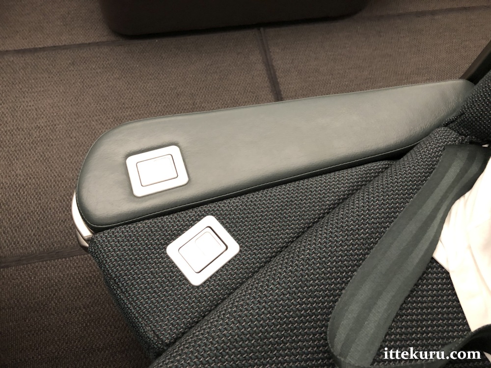 Down on the aisle-facing edge of the seat are two extra conveniences, although their purpose isn’t evident when locked into their default take-off or landing position.