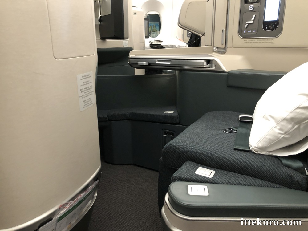 Both old and new generations of CX’s long-haul Business Class cabin employ a reverse herringbone layout, where the seats along the edges of the cabin are angled towards the windows. This arrangement – working in tandem with the shell that wraps around the back – offers a remarkable degree of privacy from the aisle and nearby seats. For someone like myself, a not particularly sociable chap who doesn’t want to see (or be seen by) other people, it’s the next best thing to a completely private room.