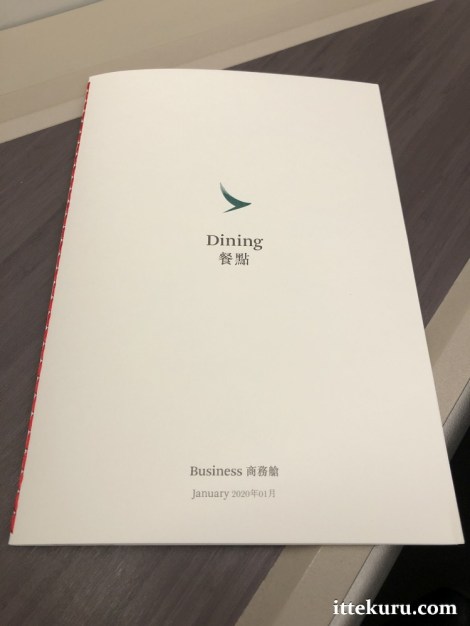 Menus were also handed out at this point, giving us time to peruse and choose … as well as distracting us from the slight ground delay. We’ll take a closer look at the catering later on.