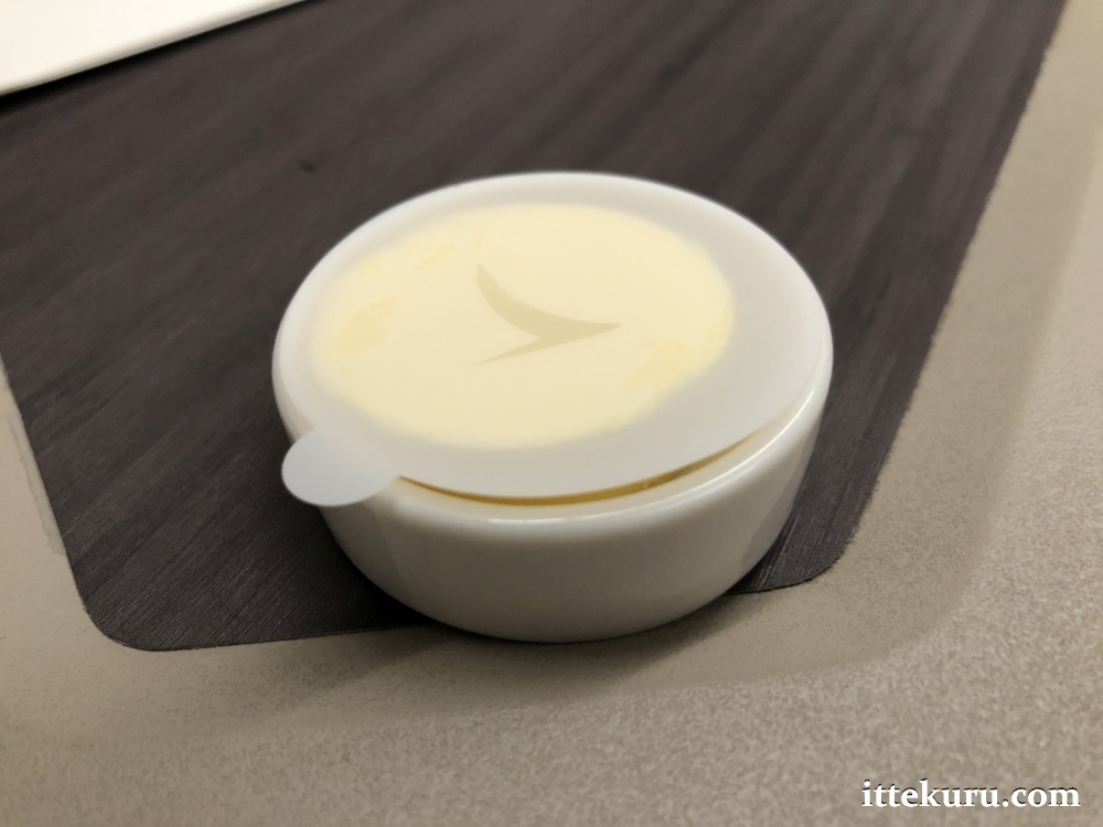 One very minor but interesting observation. The pat of butter for my bread was served in a small ceramic dish and covered with a protective paper disc bearing the CX logo.