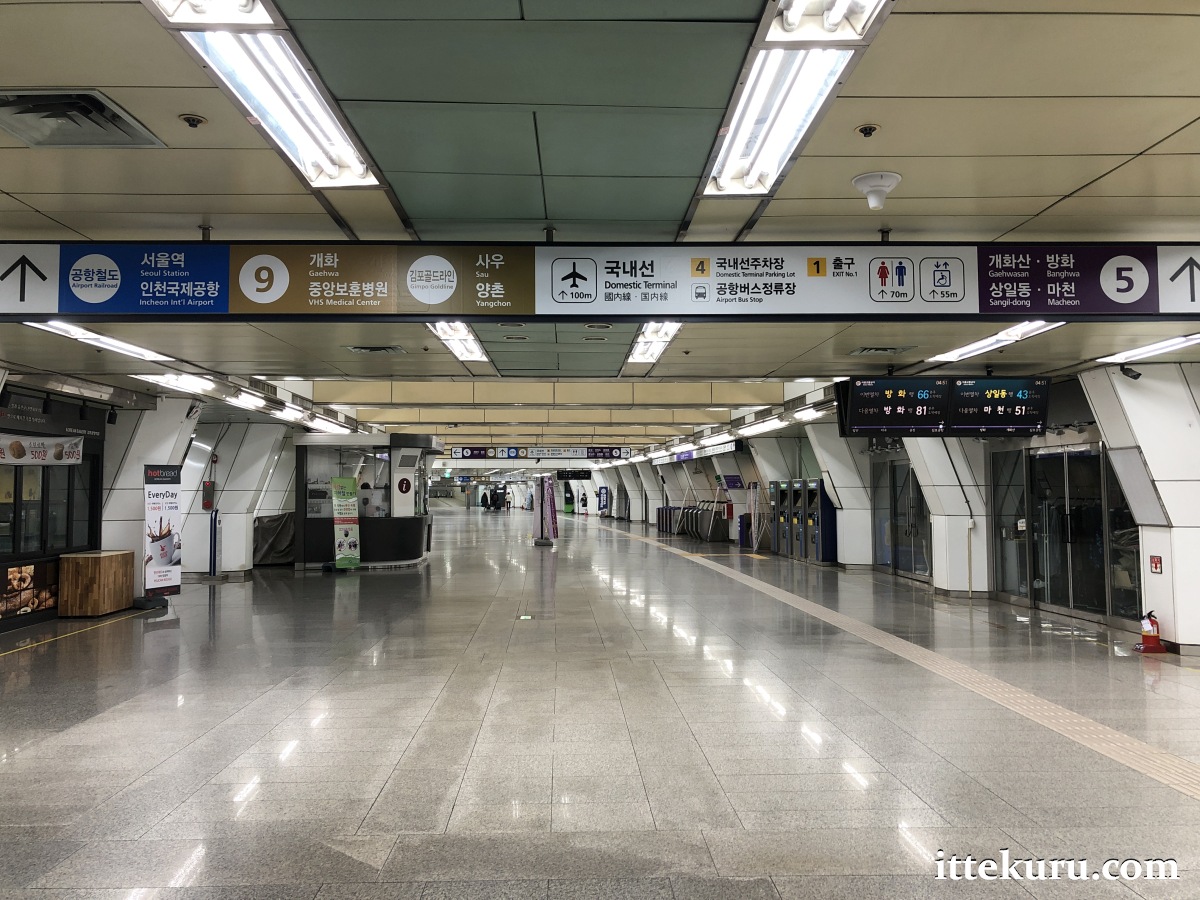 GMP’s underground railway station is served by Lines 5 and 9 of the Seoul Metro, as well as by the Airport Railroad line.