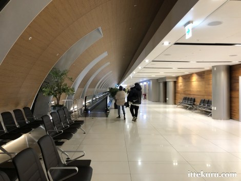 A long passageway fitted with travelators leads towards the more distant Gates 1 through 8…