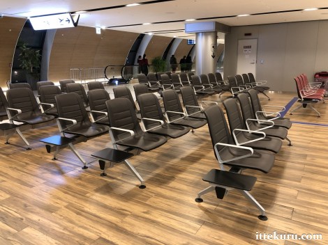 There’s plenty of seating available throughout the terminal. Note how the priority seats are very clearly marked, with deep red upholstery and thick blue borders traced out on the floor.
