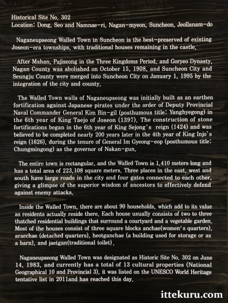 In today’s post, we’ll visit a beautiful Joseon-era walled village west of central Suncheon, in the province of Jeollanam-do on Korea’s southern coast. Here, for centuries, a formidable ring of stone fortifications has maintained a silent, steady guard over a quiet town of rustic thatched-roof houses.
