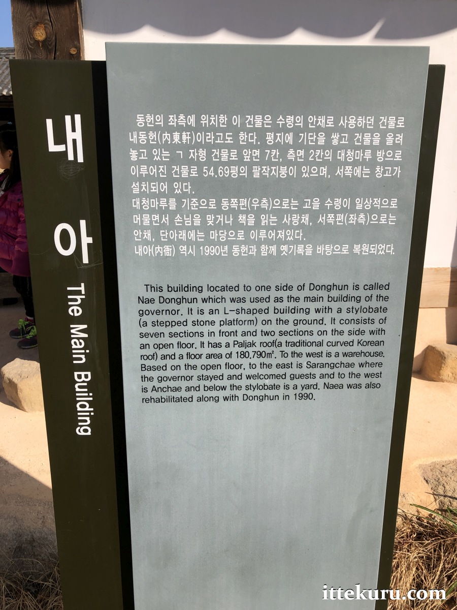 Right next to the Dongheon – in a subdivision of the same compound – is the Naea (내아), or the Nae Dongheon (내동헌). This inner enclosure was used as the local governor’s residence and reception area.