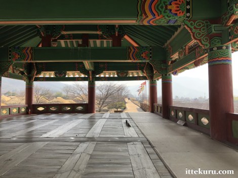 In due course, I arrived at Nammun (남문, “South Gate”). Like Naganeupseong’s East Gate, this entrance had a complete set of defensive structures – most notably the grand Ssangcheongnu pavilion bridging the gap in the circuit wall.