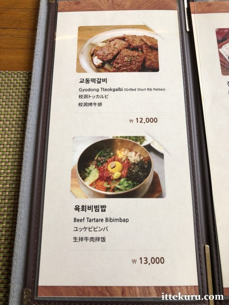 As is often the case however, I found that the local-language version had more items on offer. Here I flexed what little Korean-language ability I could muster and dared to make a selection from the standard menu: a tteokgalbi and mini-Jeonju bibimbap set (18,500 won).