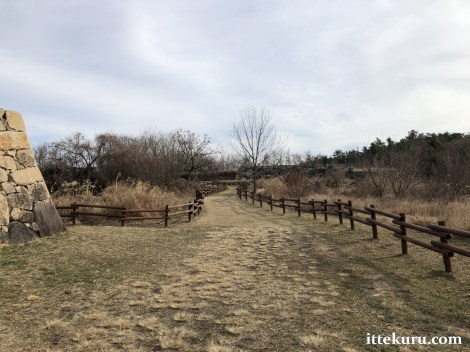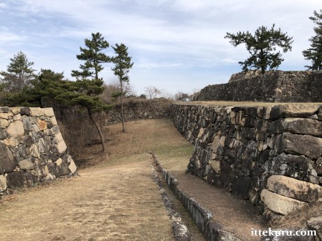 On the long and lonely walk back down to the exit, I paused several times to enjoy different views of the various landmarks I’d just seen – from the walls of the honmaru to the two gate sites.