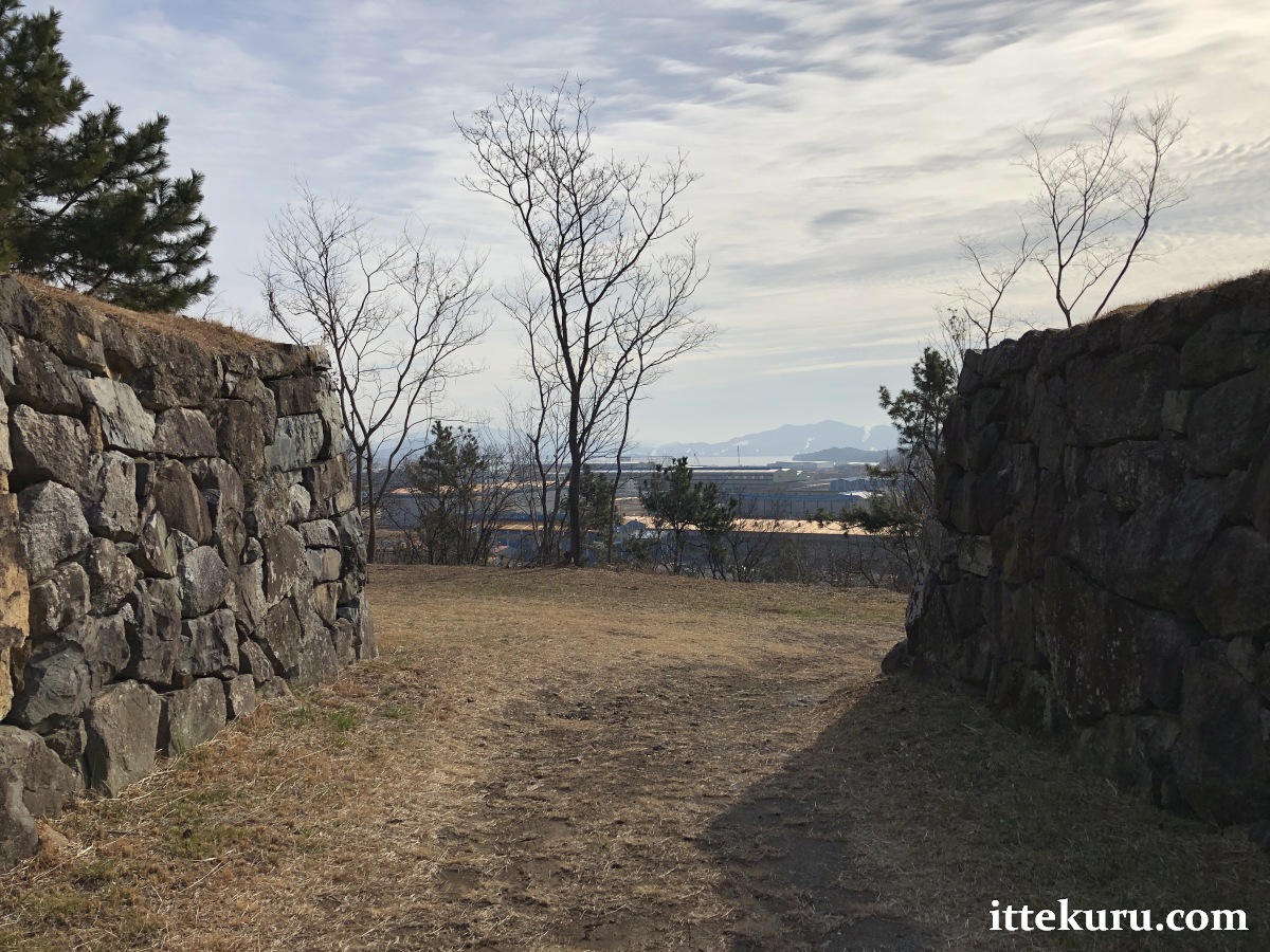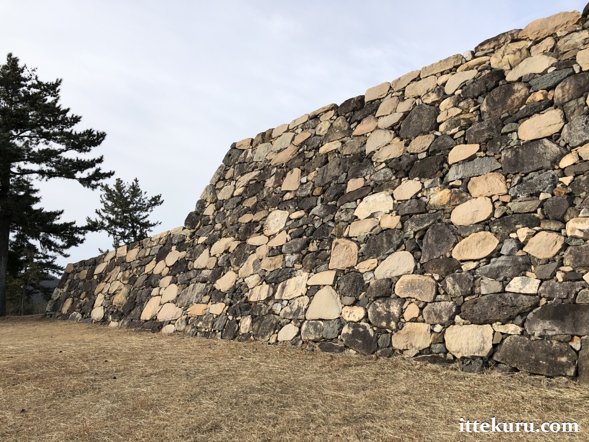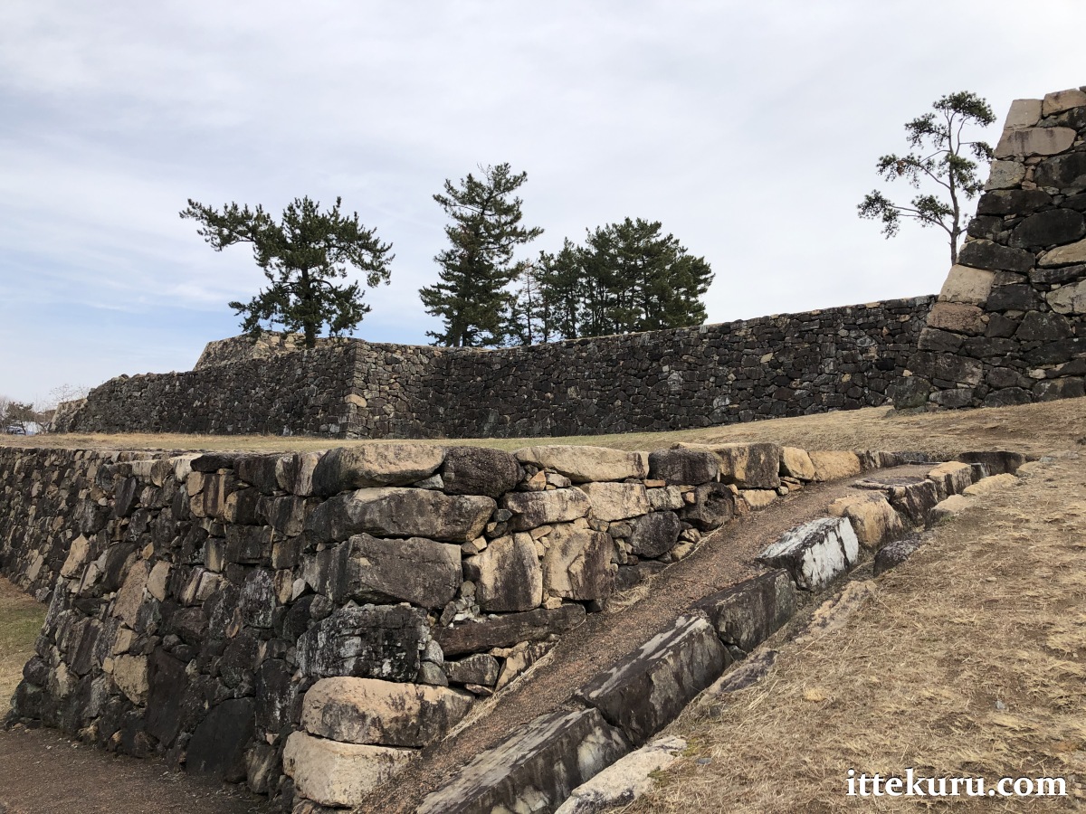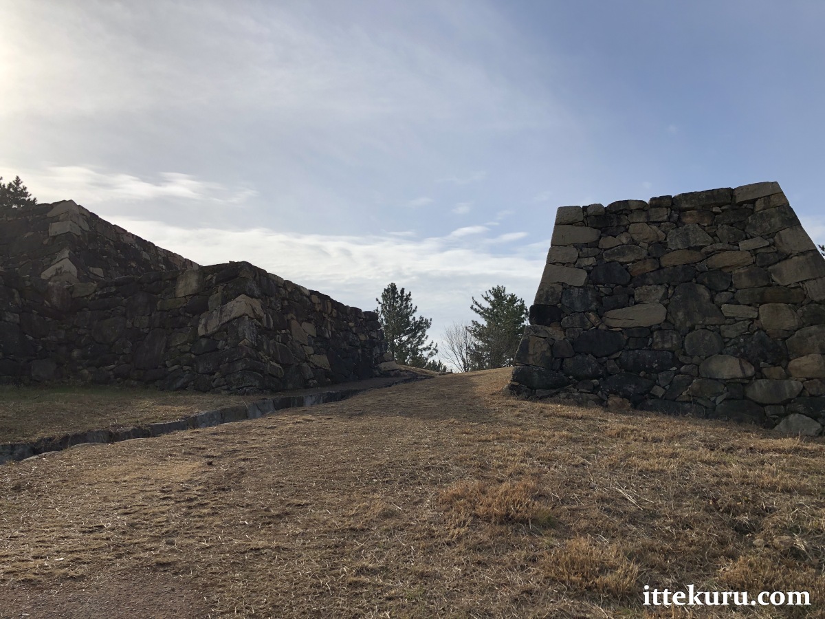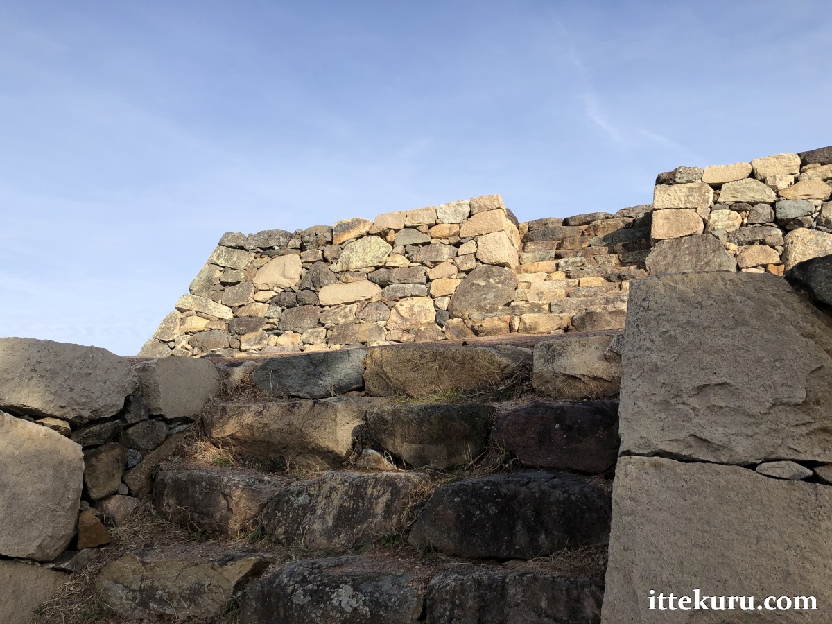 I passed through a large opening in the western side where a gate once stood. From there, I slowly made my way to the eastern, seaward side of the lower terrace, admiring the restored stretches of ishigaki that towered above me.