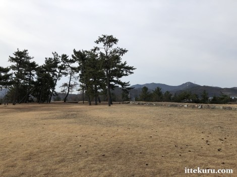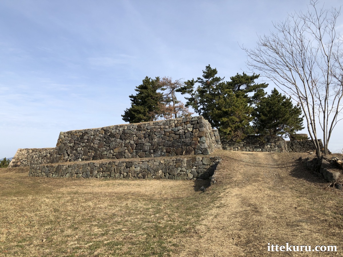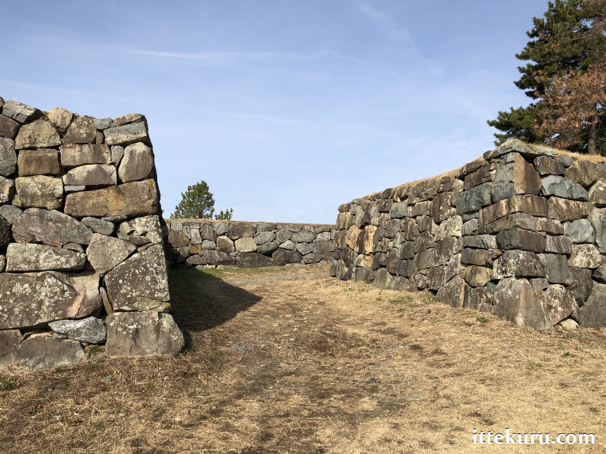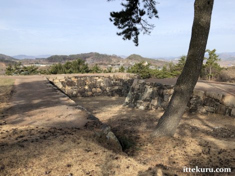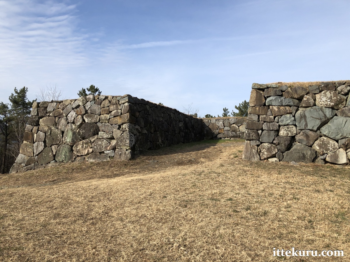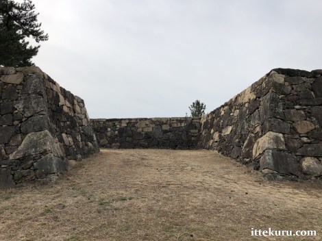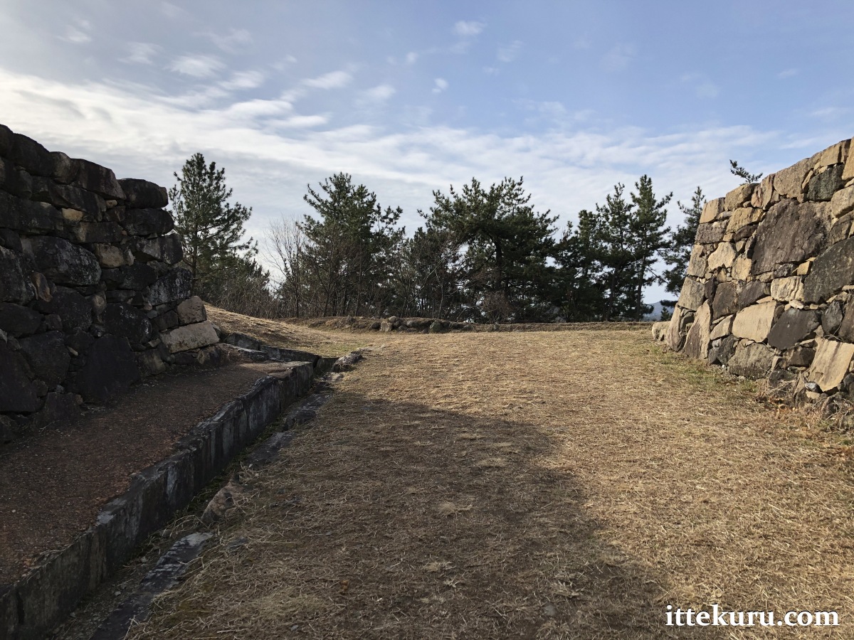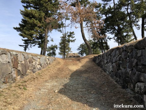 I passed through the remains of another gateway – now just a ramp of earth and a gap in the retaining wall – which led onto the uppermost terrace, the honmaru proper.