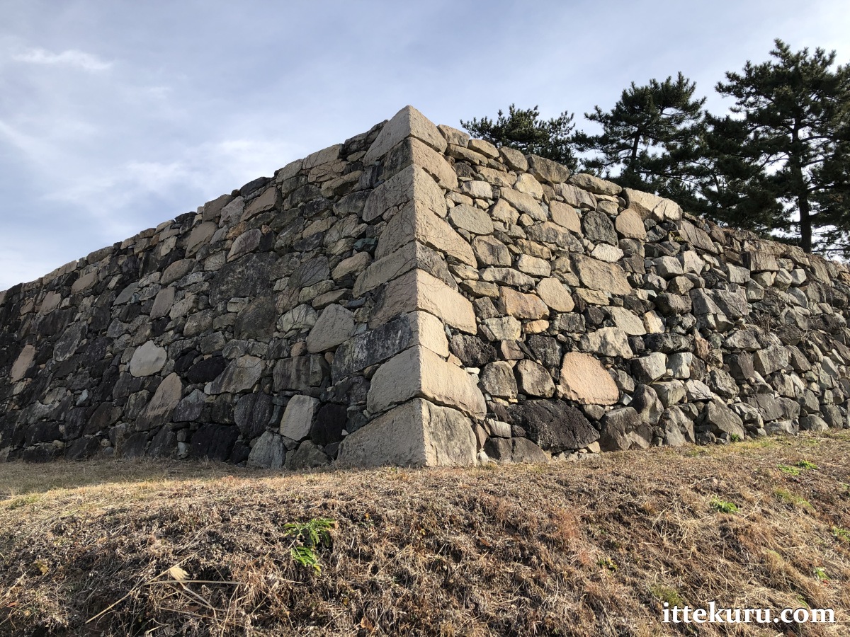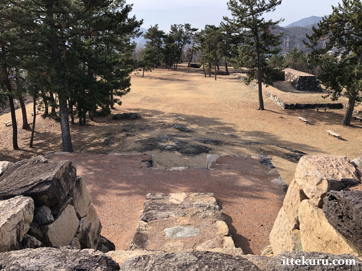 This stone-clad base once supported the tenshu (天守) or tenshukaku (天守閣): the main tower of a Japanese castle. Suncheon’s is of a type known as dokuritsu-shiki (独立式), where the tenshu stands as an independent structure; i.e., not directly connected to a secondary tower or other buildings.