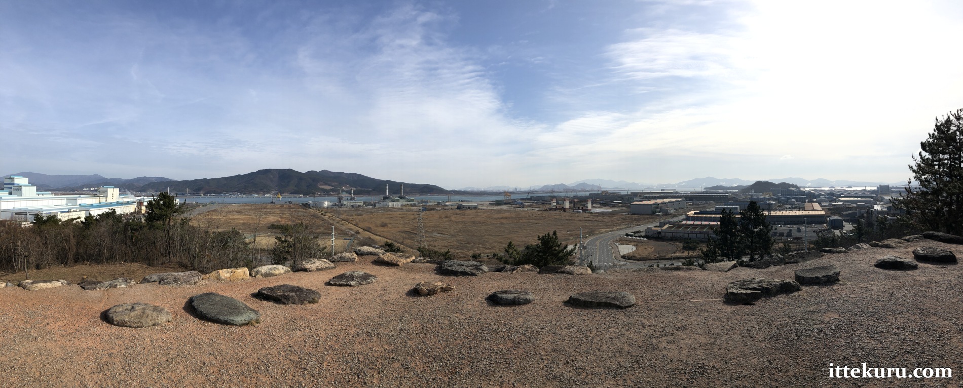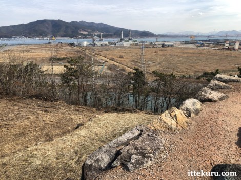 …namely, a view of Gwangyang Bay and the tree-covered islets and mountains beyond. Shame about the industrial development, though.