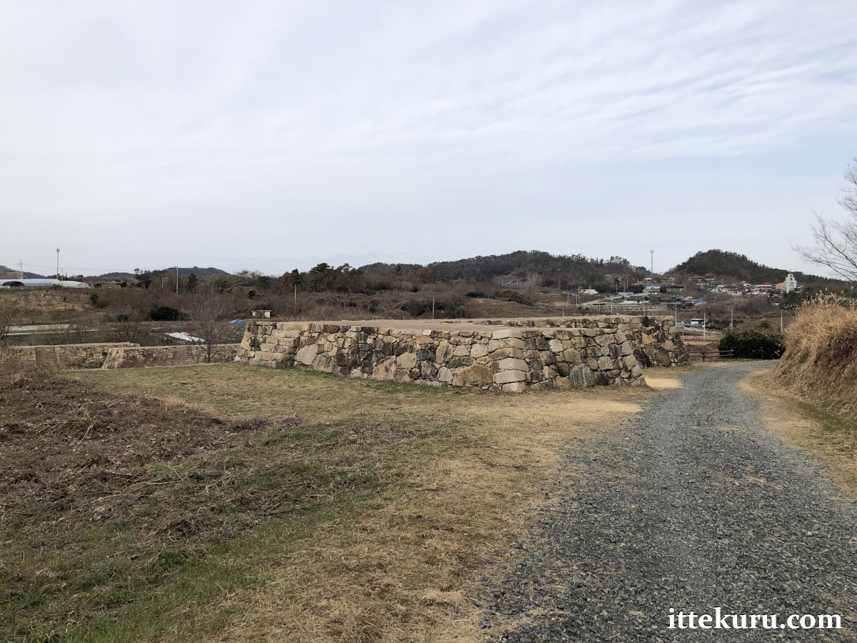 The path curved towards the east and began to rise more steeply as it mounted the slope of the tree-covered hill. Although this rocky prominence was of natural origin, I saw that the 16th century builders had levelled and sculpted the summit into something resembling a plateau, encasing the sides with vast stretches of carefully laid stone walls (石垣, ishigaki). Transformed beyond recognition, this seaside hill was now Suncheon Castle’s honmaru (本丸): the heavily fortified innermost enclosure of a Japanese stronghold.