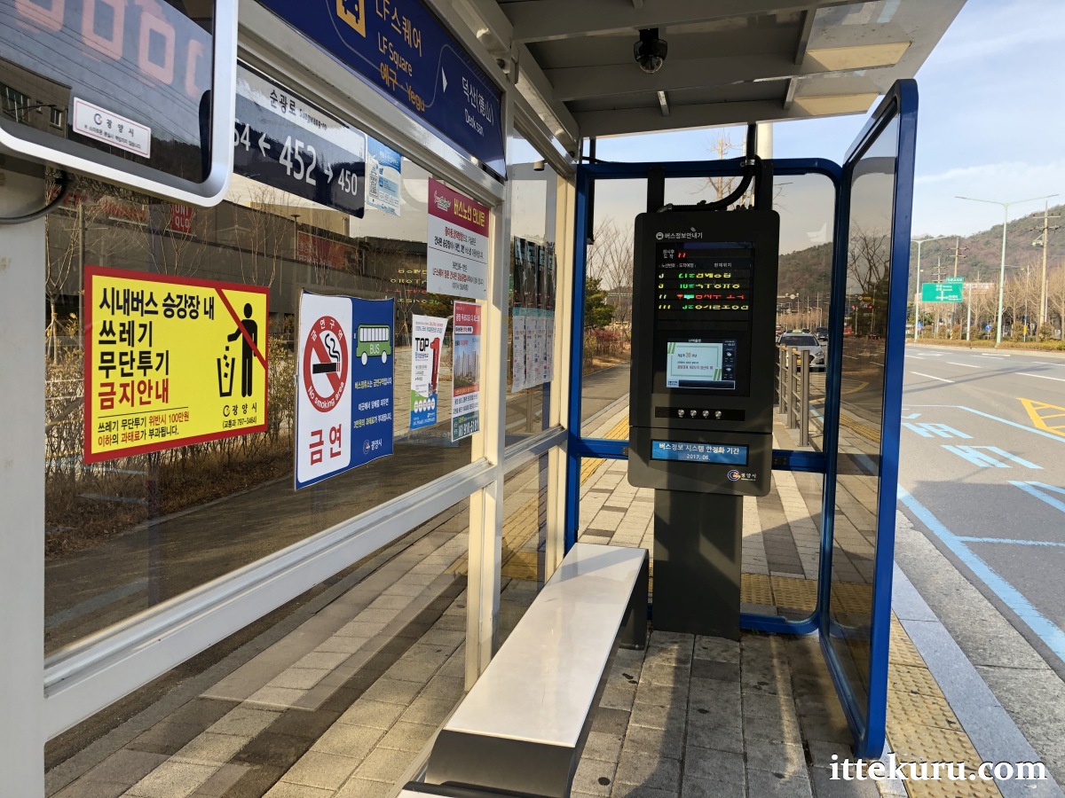My own outbound journey from central Suncheon involved two stages. First, I rode Bus Number 77 to a stop called LF아울렛 (“LF Outlet”, a.k.a. LF스퀘어 “LF Square”).