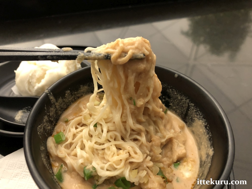 My own midnight snack was a small portion of noodles in peanut sauce, with a steamed chicken bun on the side. I also wolfed down some vegetable dumplings (not shown here) harvested from the ready-made buffet.