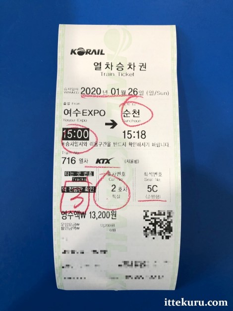 Destination : Suncheon Station (arr. 15:18)