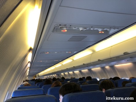Here’s a wider shot of the cabin, as seen from my row. I’ll say this much: at least the back of the plane offers a better view of the interior than closer to the front, where there’s less of the plane forward of you (hence less to see).