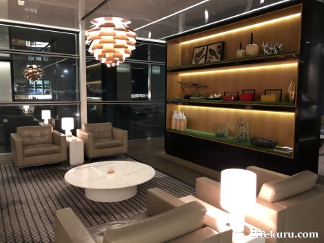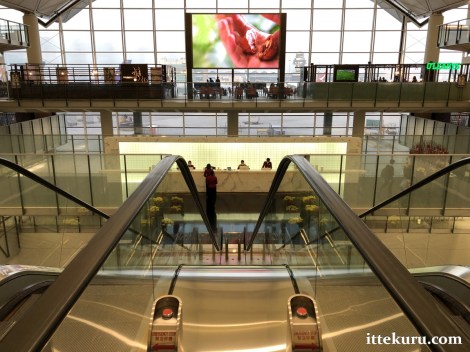 Even though the lounge itself is on Level 5, you can only enter it from Level 6 (i.e., the main departures floor). Walk towards the western end of the terminal’s central “stalk” – past Gates 35/36 – and take the escalator down to reception.