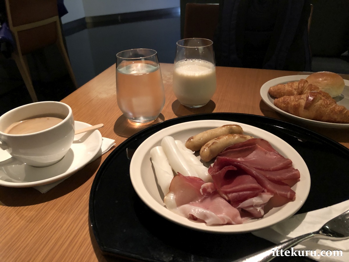 I decided to have breakfast here during my visit to the lounge. A rapid march past the bread baskets, a quick raid of the counter for some delicious cold cuts, a surgical strike at the drinks dispensers, and soon the troops were all assembled for the morning parade into my waiting stomach. Yum.