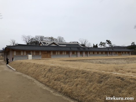 I kept heading north, then turned west towards a grass-covered earthen platform. This marked the foundations of support buildings associated with Heungbokjeon that have not yet been reconstructed.
