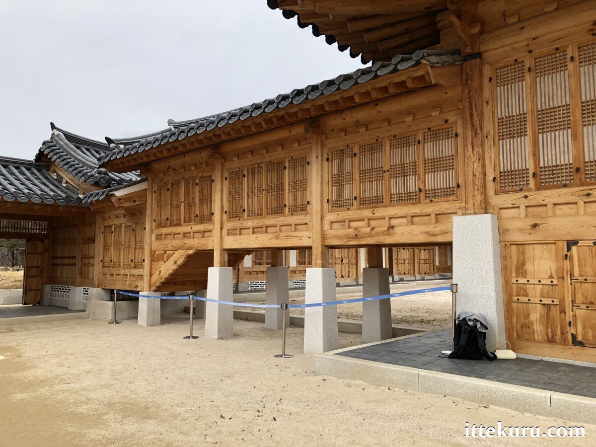 The projected completion date was December 2018, so I expected to see Heungbokjeon unveiled in all its glory when I paid another visit in February 2019. Alas, the compound was still fenced off and inaccessible, although it looked essentially complete with doors and tiled roofs installed.