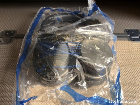 Incidentally, the supplied headphones were of a robust design – far from the wimpy plastic bands usually offered in Economy Class (if they’re even offered at all on a short flight like this).