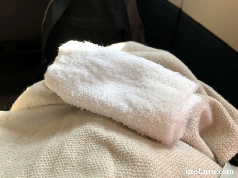 A few minutes later, one of the cabin attendants offered me the customary hot towel. I suspect this refreshing amenity isn’t available for the time being (in view of the ongoing medical emergency); if so, perhaps disposable wet wipes will take its place until the crisis passes.