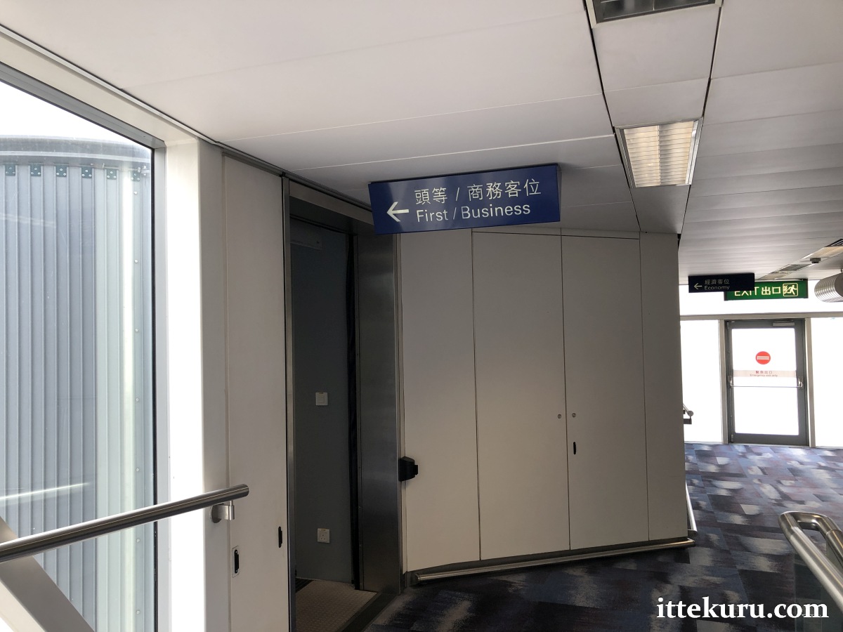 At our assigned gate, separate queueing lanes were provided for Business Class and Economy Class passengers.