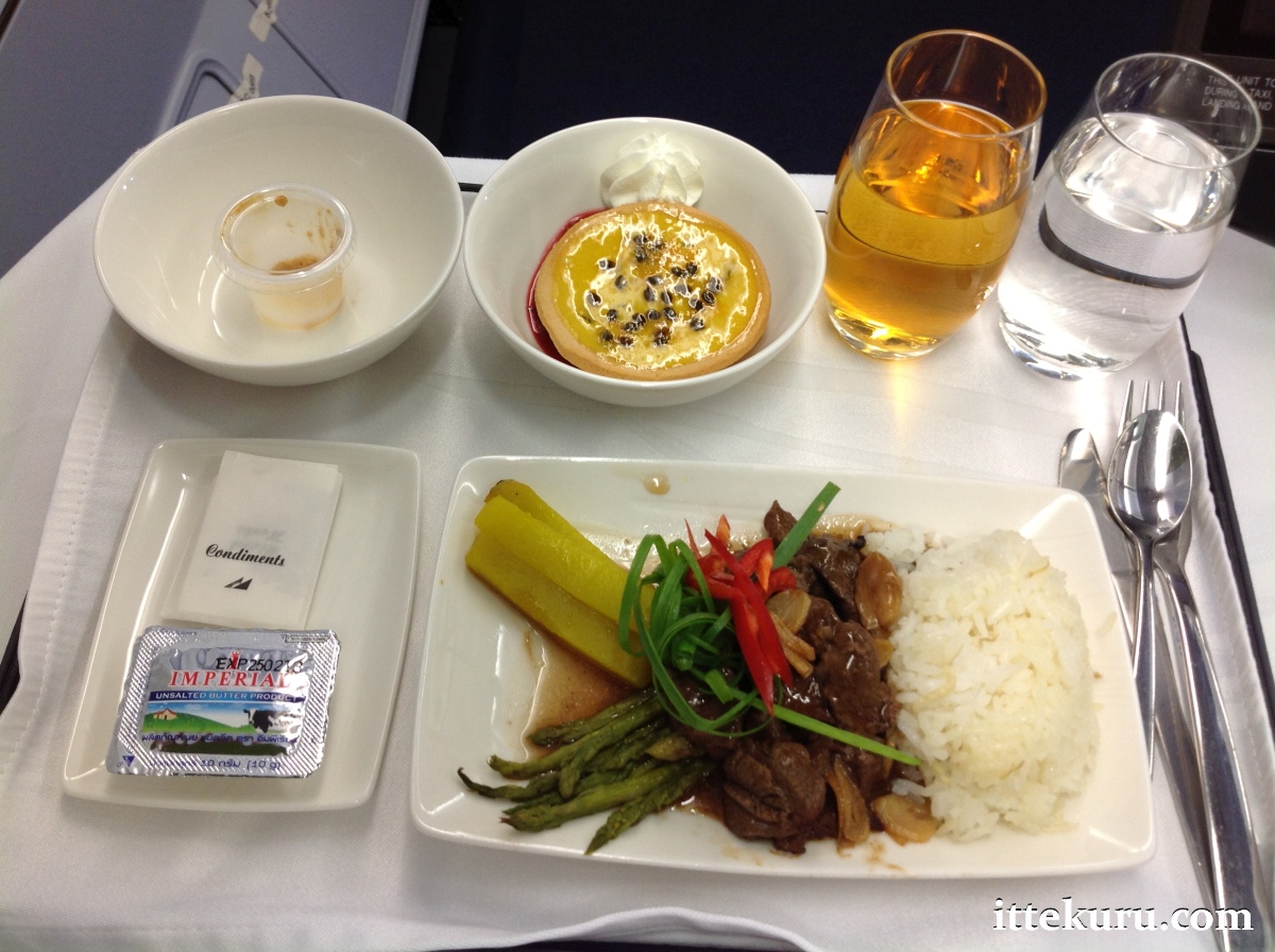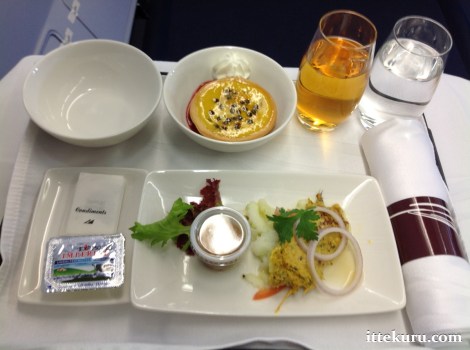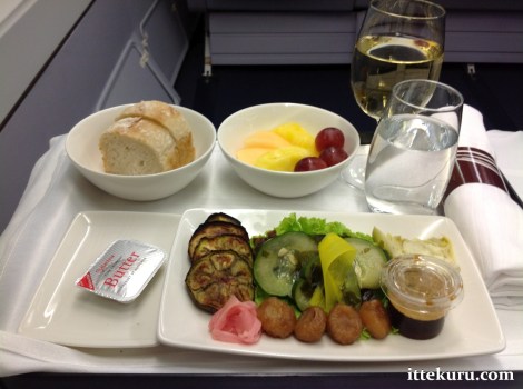 A similar welcome course would have been served on the outbound flight, although I don’t have a photograph of that.