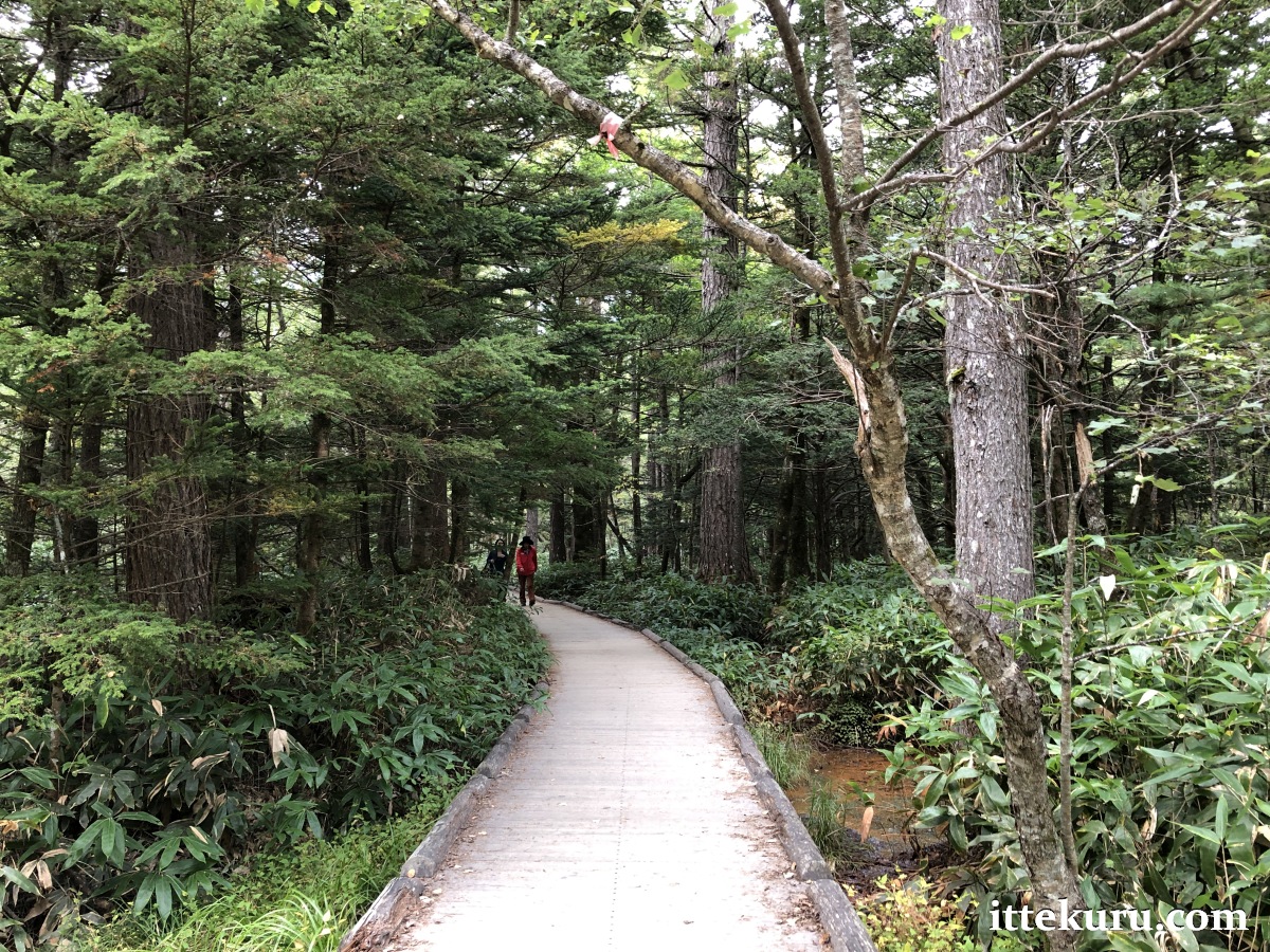 The path brought me to the edge of Tashiro-ike (田代池 / Tashiro Pond). This shallow body of water was once much deeper and larger, but the gradual accumulation of sediment and decomposing plant matter has turned most of it into wetland.