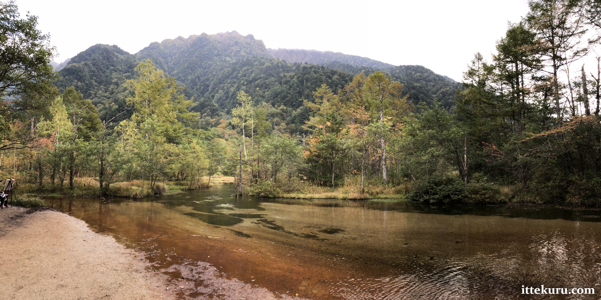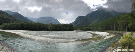 This is a particularly scenic place, and perhaps one of my favourite spots in that small area of Kamikōchi I’ve visited so far. Let’s give it its due with a panoramic shot (click to enlarge).