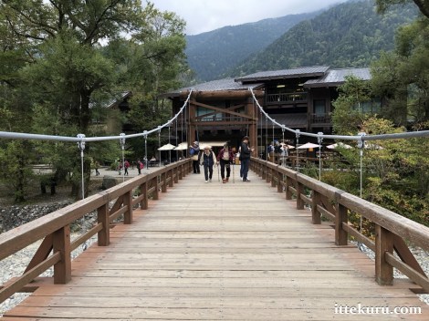 After putting the last stretch behind me, I finally caught sight of Kappa-bashi (河童橋 / Kappa Bridge): one of Kamikōchi’s most famous man-made landmarks. The surrounding area is the most heavily transformed in the valley, with a small cluster of hotels offering dining facilities and other conveniences for visitors.