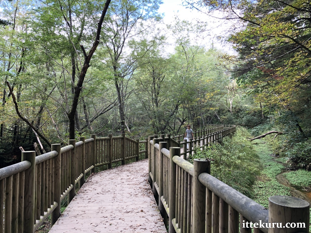 Here, visitors are presented with a choice between two nature trails. Left for the riverside course that runs along the bank of the Azusa-gawa, right for the course that goes through an evergreen forest.