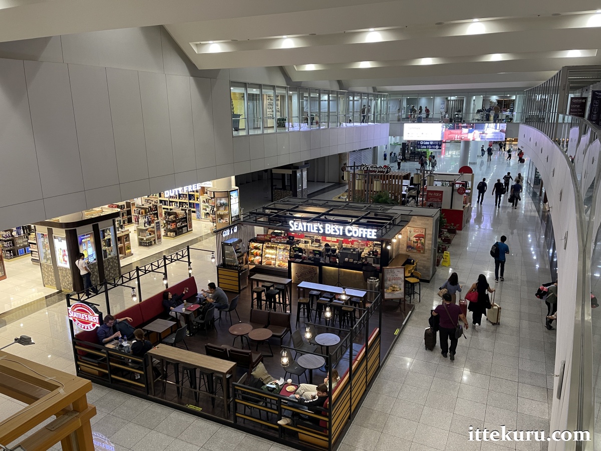 Most of T3’s food service establishments are concentrated in the central hall next to the duty free shops. Options are fewer and more basic – e.g., snack stalls and convenience stores – the further south you go.