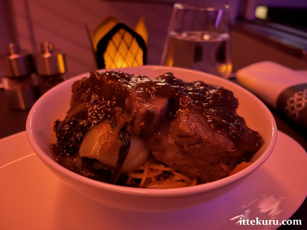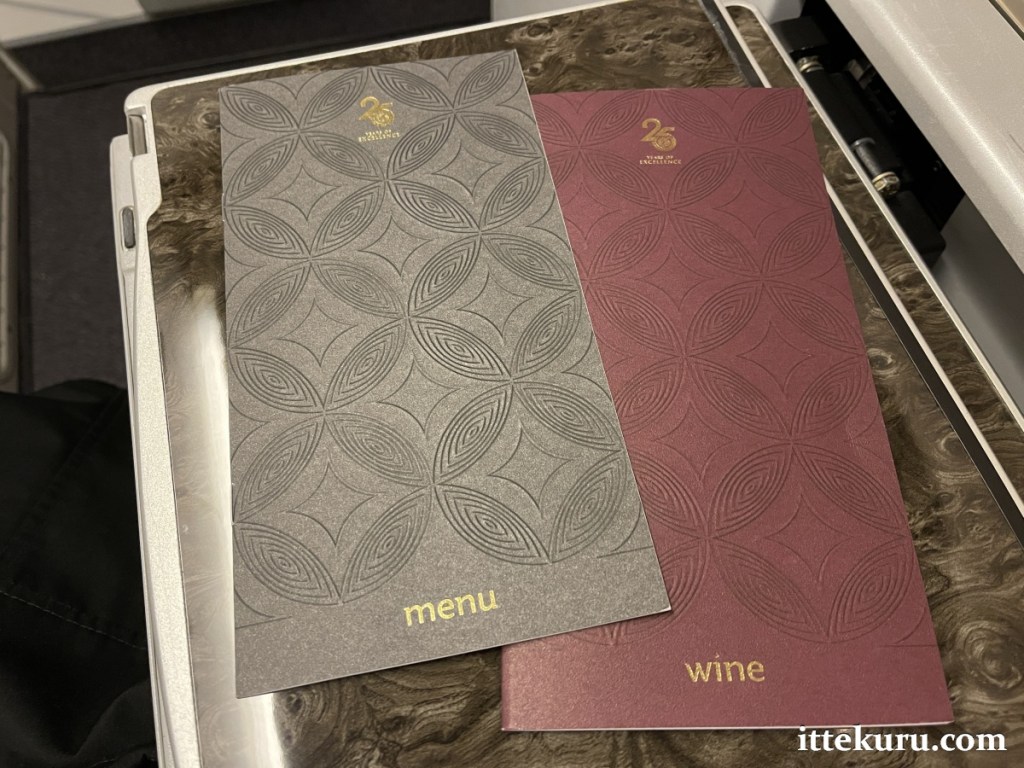 A little later, another cabin attendant came round and politely asked if I’d had a chance to peruse the menu. I communicated my preferred choices for both the post-take-off light meal and the pre-landing breakfast, which were duly noted down. That marked the end of pre-departure service.