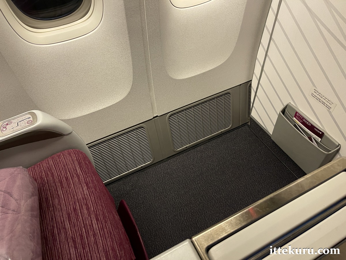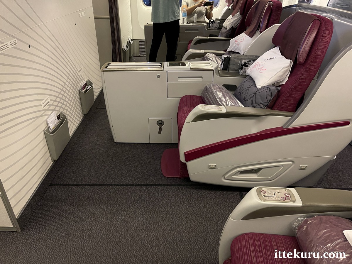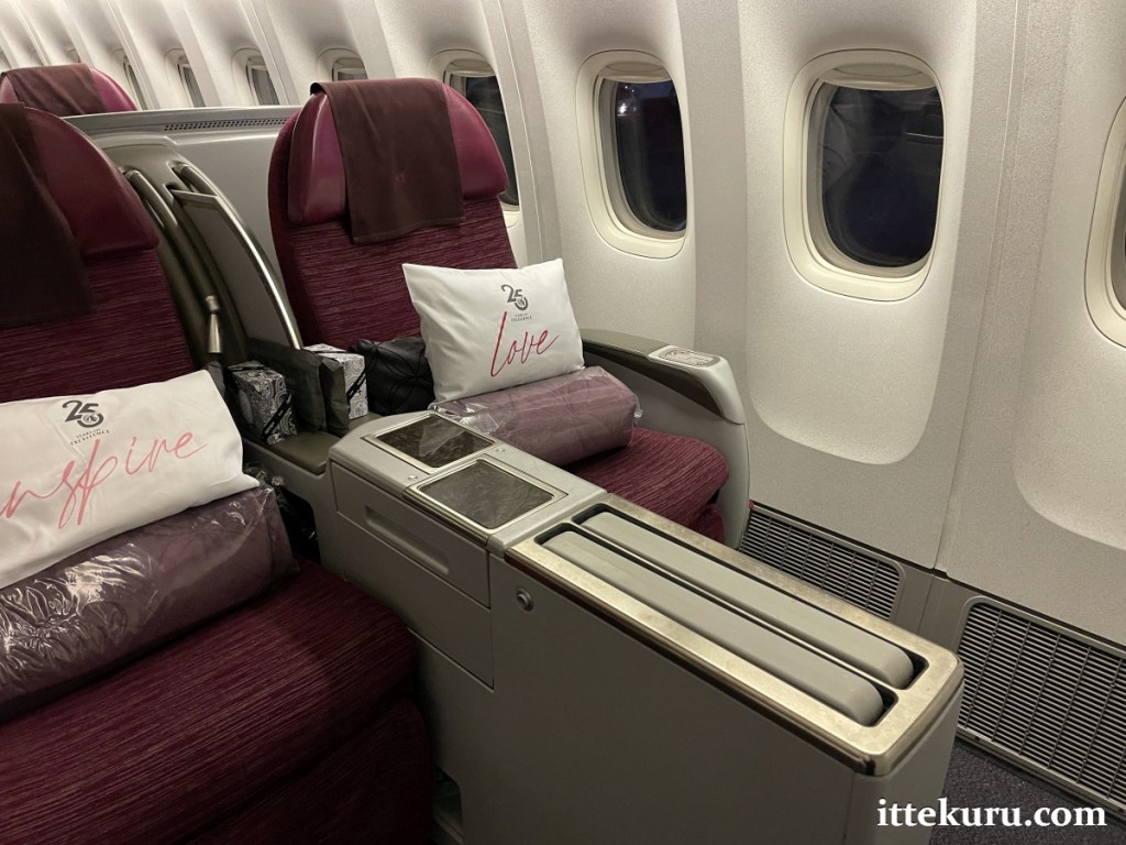 Whilst not nearly as private as the newer QSuites, this seat still offered a comfortable environment for my nearly 9-hour flight to DOH. For one thing, the legroom was astoundingly vast – so much so that aisle access wasn’t a problem so long as my neighbour’s seat wasn’t fully extended.