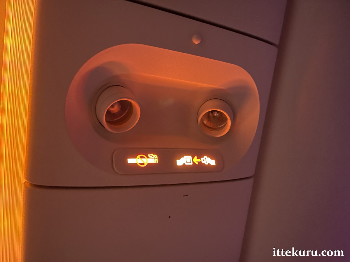 No coat hook (or none that I noticed anyway), which is a shame. A little hook on the bulkhead directly opposite me would have been the perfect place for hanging my jacket.