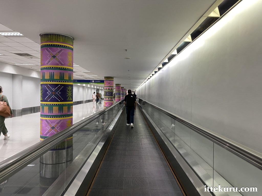 You may need to cover a fair bit of distance, especially if your plane docks at one of T3’s more remote gates. (This is often the case for smaller aircraft operated by budget carriers.) The corridor is fitted with a few moving walkways to help speed the transit, but they don’t serve its full length.