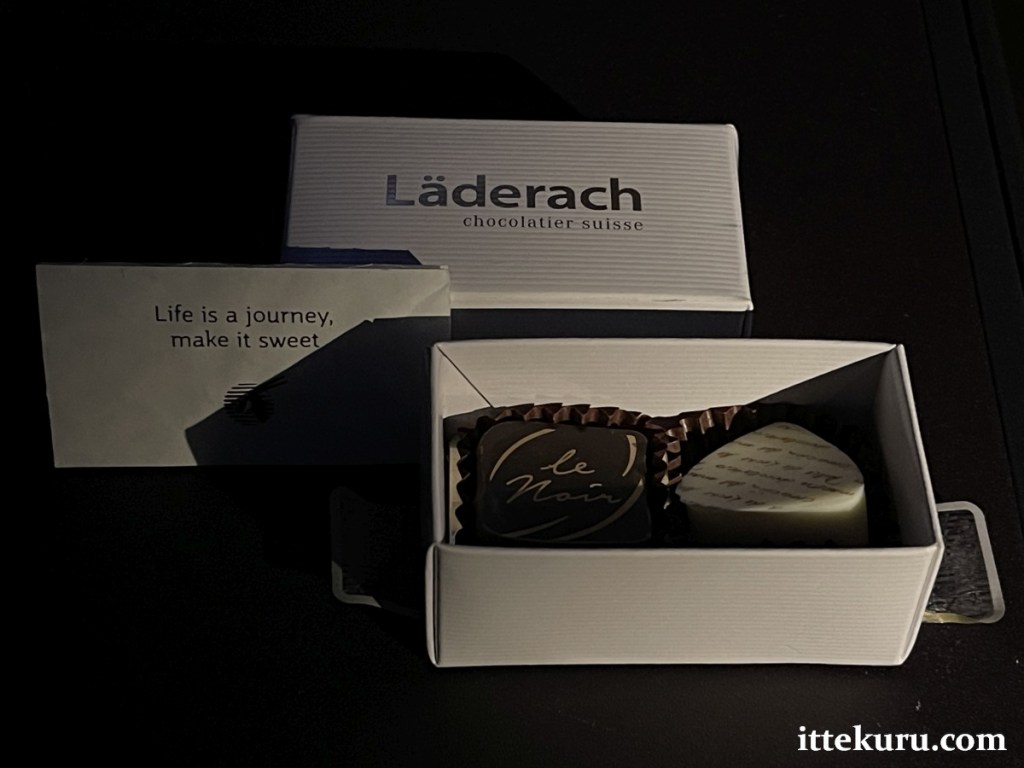 About an hour before landing, I was given a small box of Läderach chocolates.