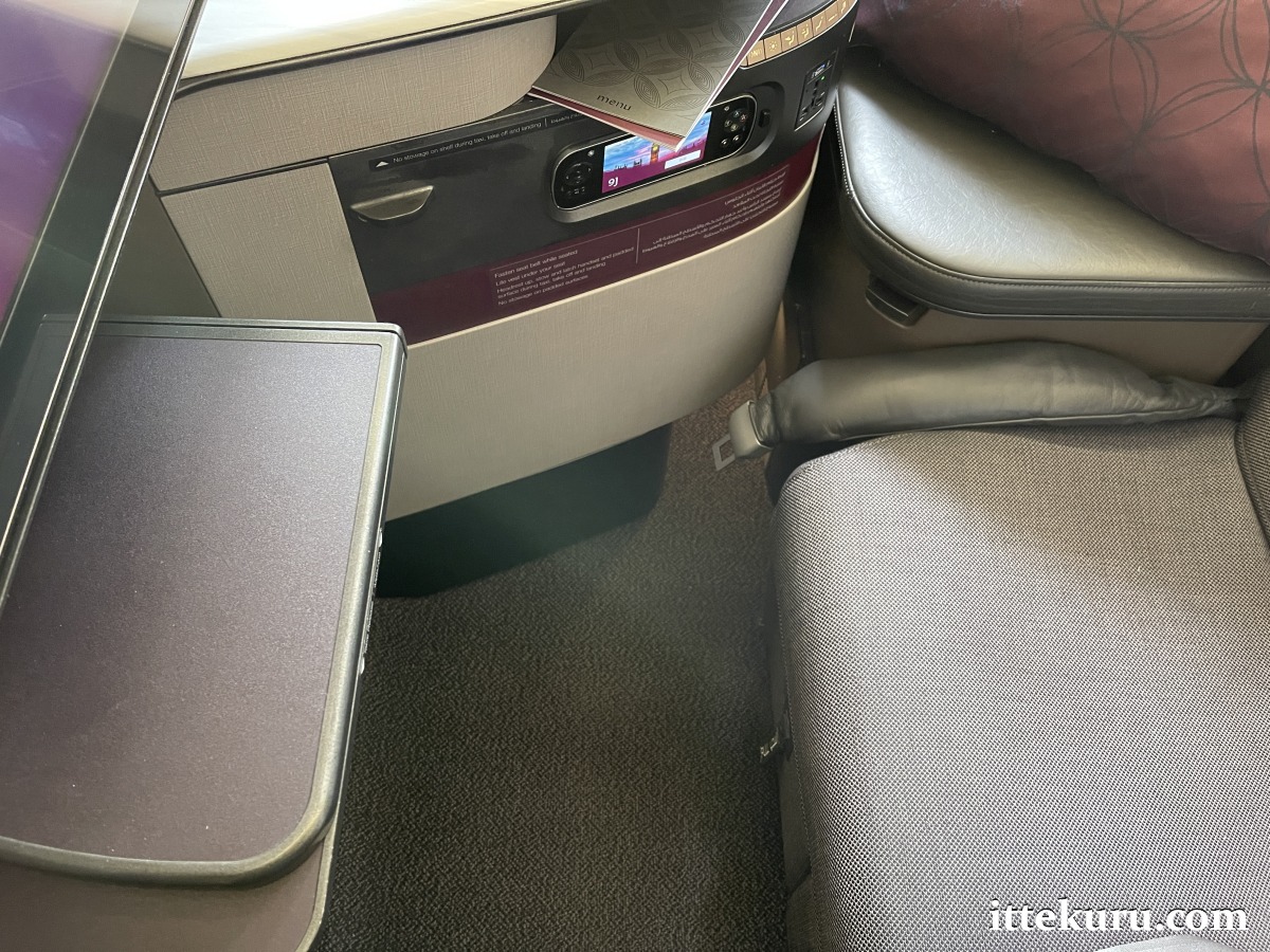 As for my forward-facing Qsuite (number 9J), the seat was installed closer to the aisle whilst the side table and ottoman were against the windows.