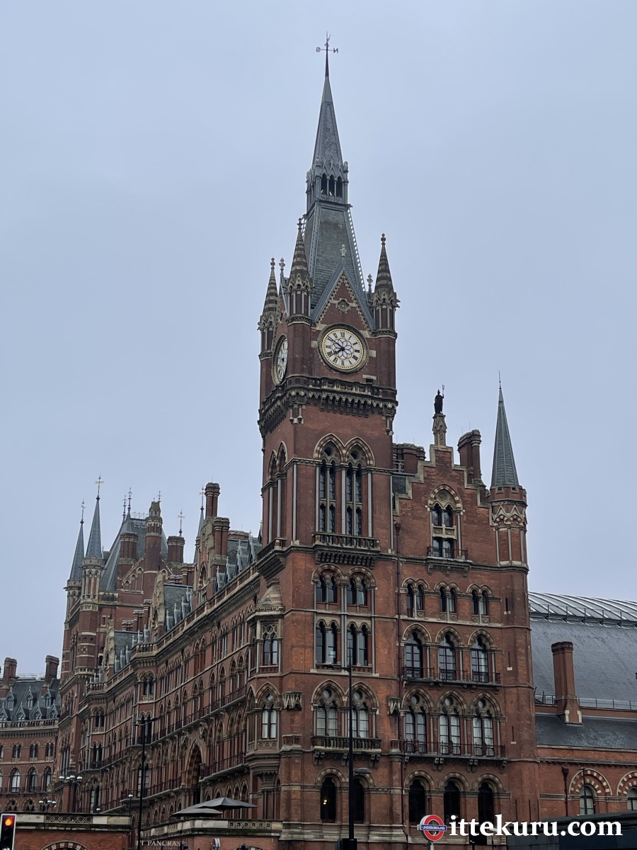 …is what I’d like to say. Then again, this is London-town we’re talking about. What could be a more appropriate greeting than the sight of hazy, overcast skies hanging above the soaring spires of St. Pancras Station?