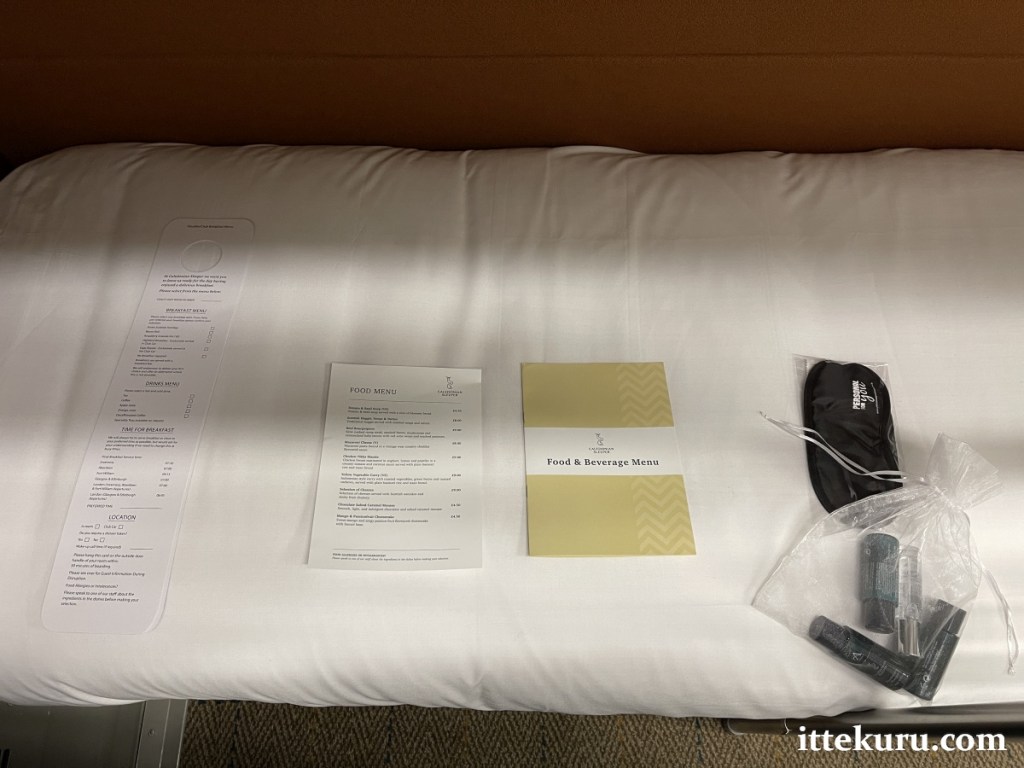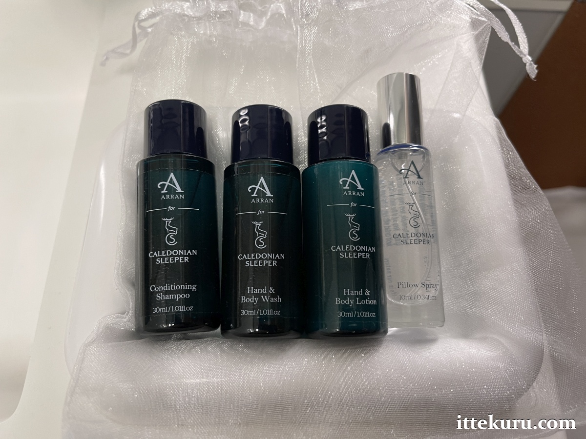 Next to the sleep mask was a bag of Scottish toiletries made by Arran. Shame I couldn’t use the bath products on board due to the plumbing issue, but I did use them later in my hotel and thought that they smelled exceptionally good.